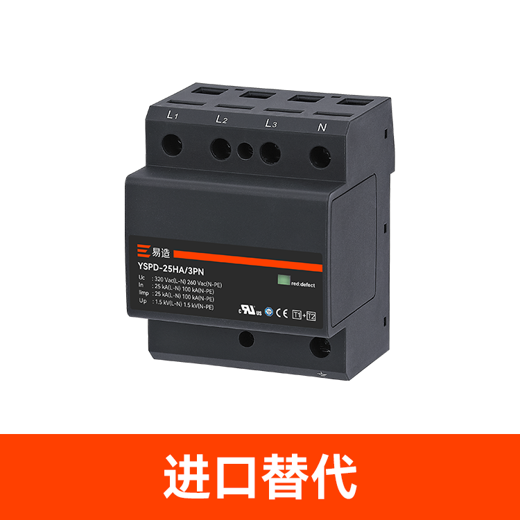 一級(jí)浪涌保護(hù)器通常安裝于獨(dú)立的總配電箱或主配電柜總進(jìn)線處,對(duì)電源傳輸線路遭受直接雷擊時(shí)的巨大能量進(jìn)行泄放,防止電氣設(shè)備過(guò)電壓損壞。易造YSPD系列T1類大通流SPD是能量協(xié)調(diào)的雷電流保護(hù)器,無(wú)需連接額外的線纜或安裝退耦器就能實(shí)現(xiàn)與二級(jí)浪涌保護(hù)器之間的能量協(xié)調(diào),簡(jiǎn)化了不同SPD級(jí)別間的安裝,使上下級(jí)SPD安裝更靈活。