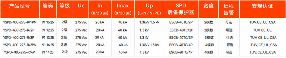 二級(jí)浪涌保護(hù)器YSPD-40C-275
