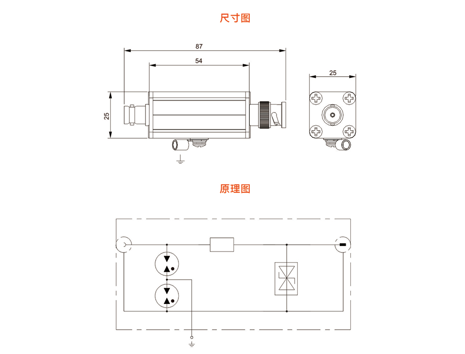 一體化同軸電涌保護(hù)器,帶BNC接口,適用于視頻監(jiān)控?cái)z像系統(tǒng)的保護(hù),通常安裝在防雷分區(qū)LPZ 0B-2及后續(xù)分區(qū)。