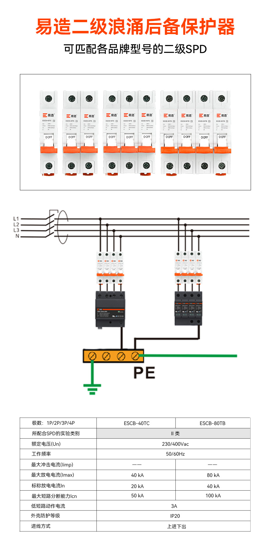 ESCB-80TB/40TC防雷后備浪涌保護(hù)器依據(jù)IEC和GB標(biāo)準(zhǔn)設(shè)計(jì),采用主回路脫扣技術(shù),通常用于保護(hù)Imax為80KA的浪涌保護(hù)器,可切斷100KA的短路電流,并且可在極短時(shí)間內(nèi)切斷3A以上的低短路電流,具有高短路分?jǐn)?/span>,低短路瞬動(dòng),電涌耐受能力高,殘壓低,尺寸小,可監(jiān)控等優(yōu)點(diǎn),廣泛運(yùn)用于配電柜,配電箱,低壓柜上.