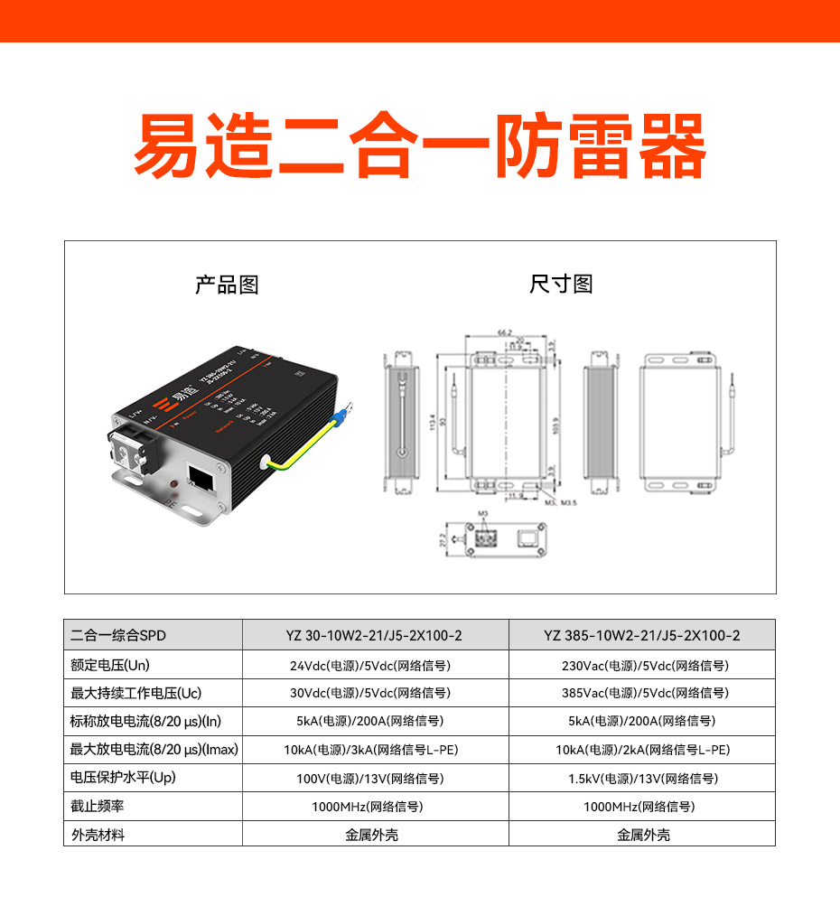 電源網(wǎng)絡(luò)二合一防雷器