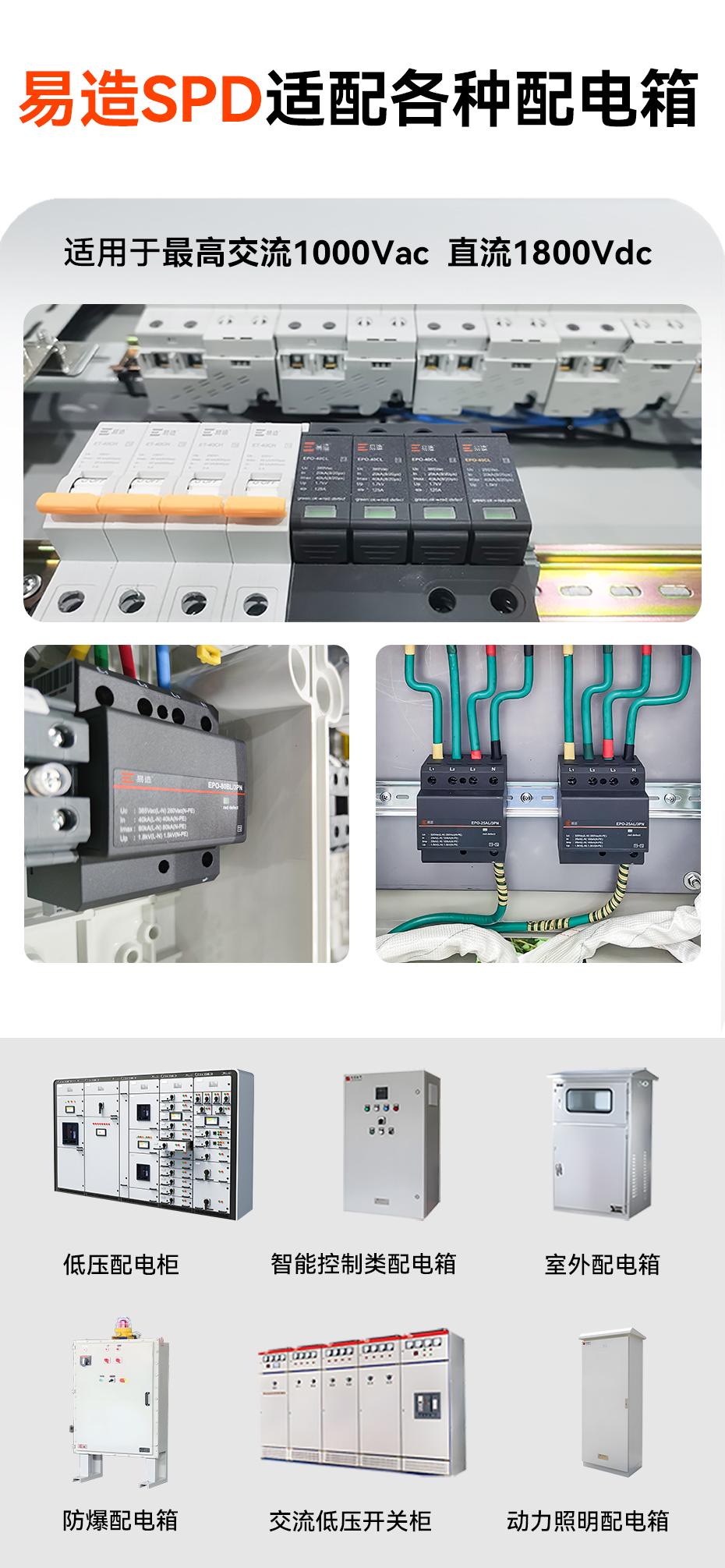 電涌保護(hù)器簡稱SPD,又稱浪涌保護(hù)器、電源防雷器,適用于48Vac-1000Vac低壓交流配電系統(tǒng)和5Vdc-1800Vdc的直流系統(tǒng),限制雷電引起的瞬態(tài)過電壓和工業(yè)開關(guān)引起的操作過電壓,在泄放高電涌電流的同時實現(xiàn)極低殘壓,防止電氣設(shè)備損壞,延長設(shè)備使用壽命。