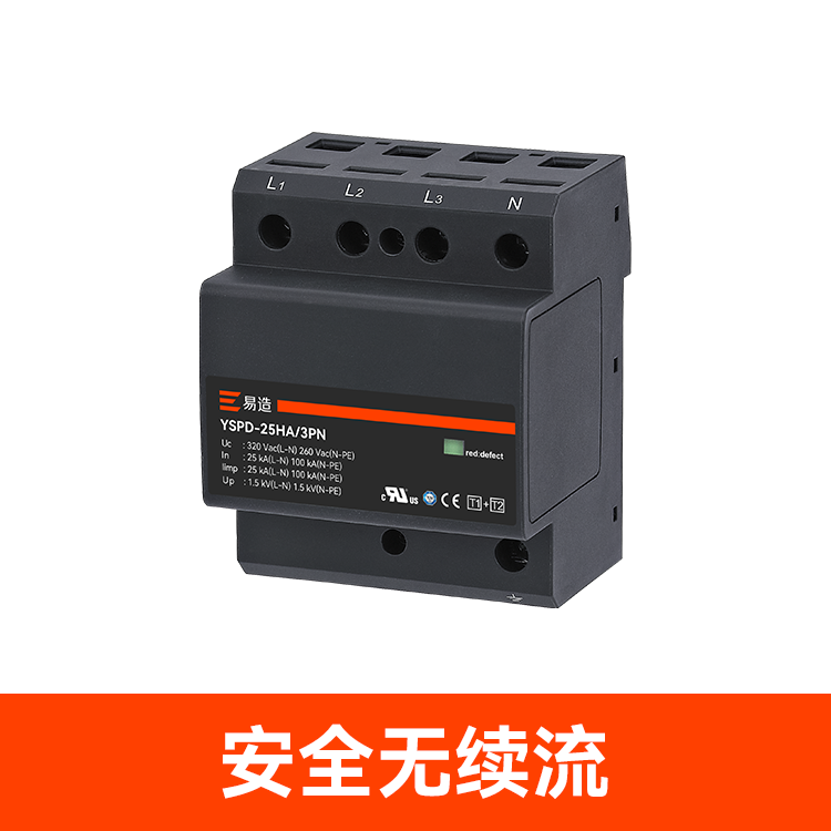 易造1+2級25kA復合型浪涌保護器安全無續(xù)流、體積小每相僅一個模數(shù)寬(18mm)、高通流低Up,帶故障指示、遠程告警功能、維護方便,最大持續(xù)工作電壓高達760Vac,可直接保護終端設備。